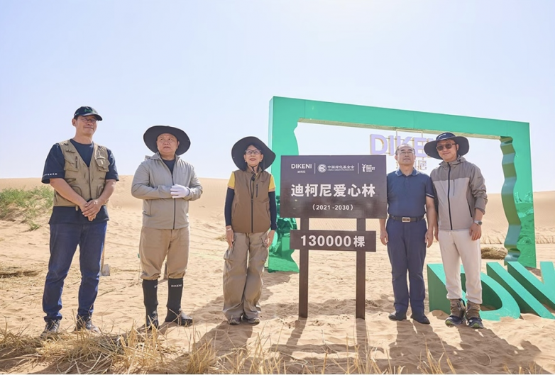 自2021年起,DIKENI迪柯尼携手中国绿化基金会推进“沙漠锁边林”计划,至今已迈入新一轮五年合作期,承诺至2030年种植13万棵树,治理沙化土地近200万平方米。这些数字背后,是品牌对“长期主义环保”的坚持,是一种不追逐即时曝光、却真正扎根土地的真诚实践。